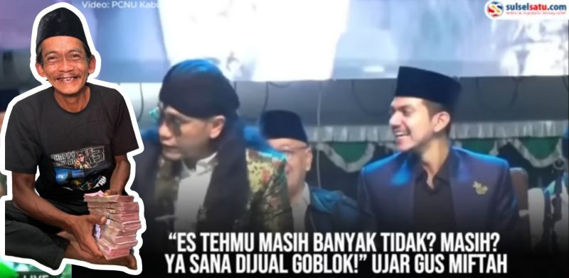 “Es Tehmu ijek ra? (Es teh mu masih nggak?) Setelah dijawab “Masih“, Gus Miftah kemudian melontarkan kata-kata ” Yo Di dol Gobl*k! (Ya, jual gobl*k).
